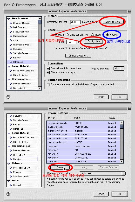 느리시다는 분들이 계셔서 맥용 익스플로어 세팅을 올려봅니다.