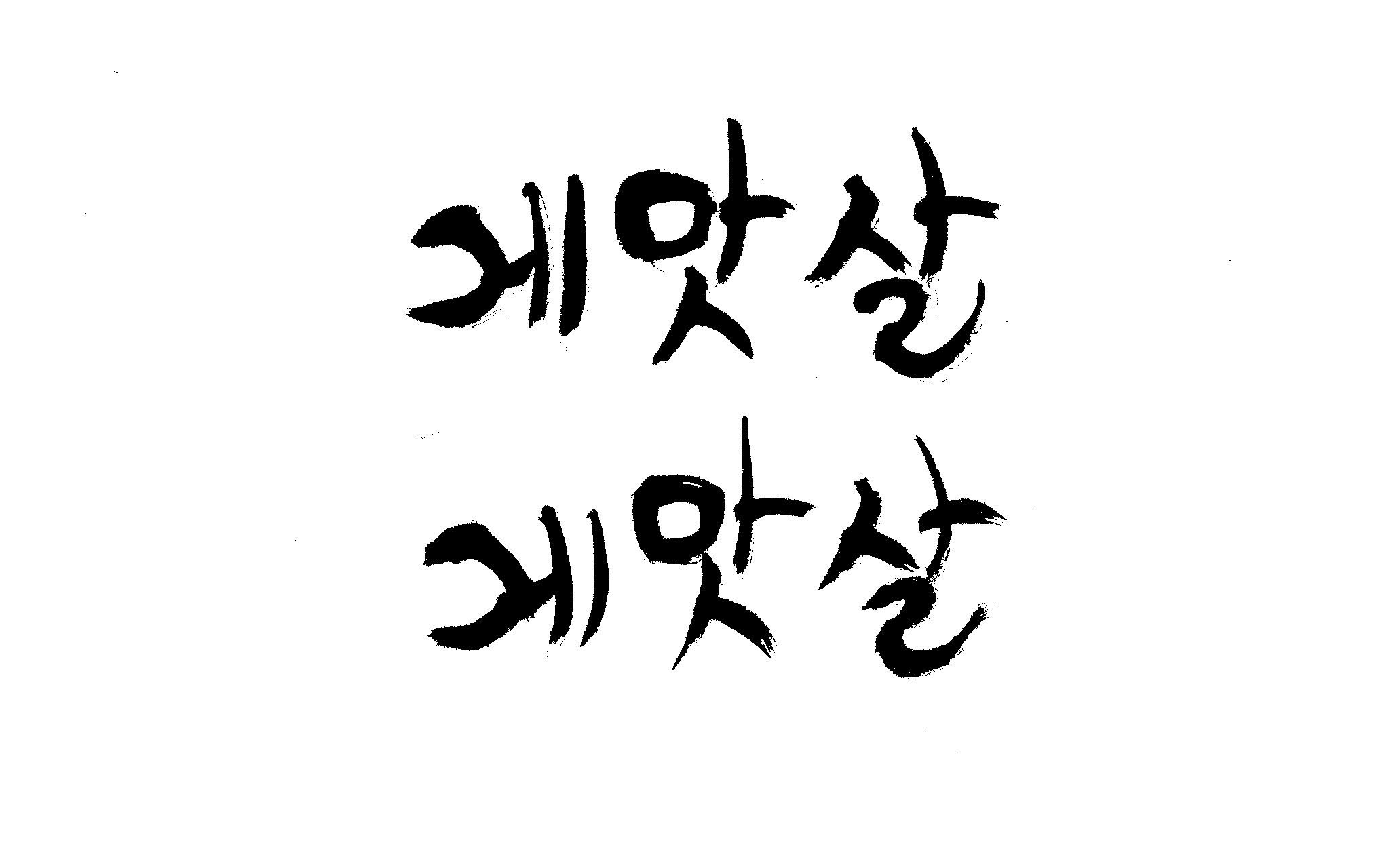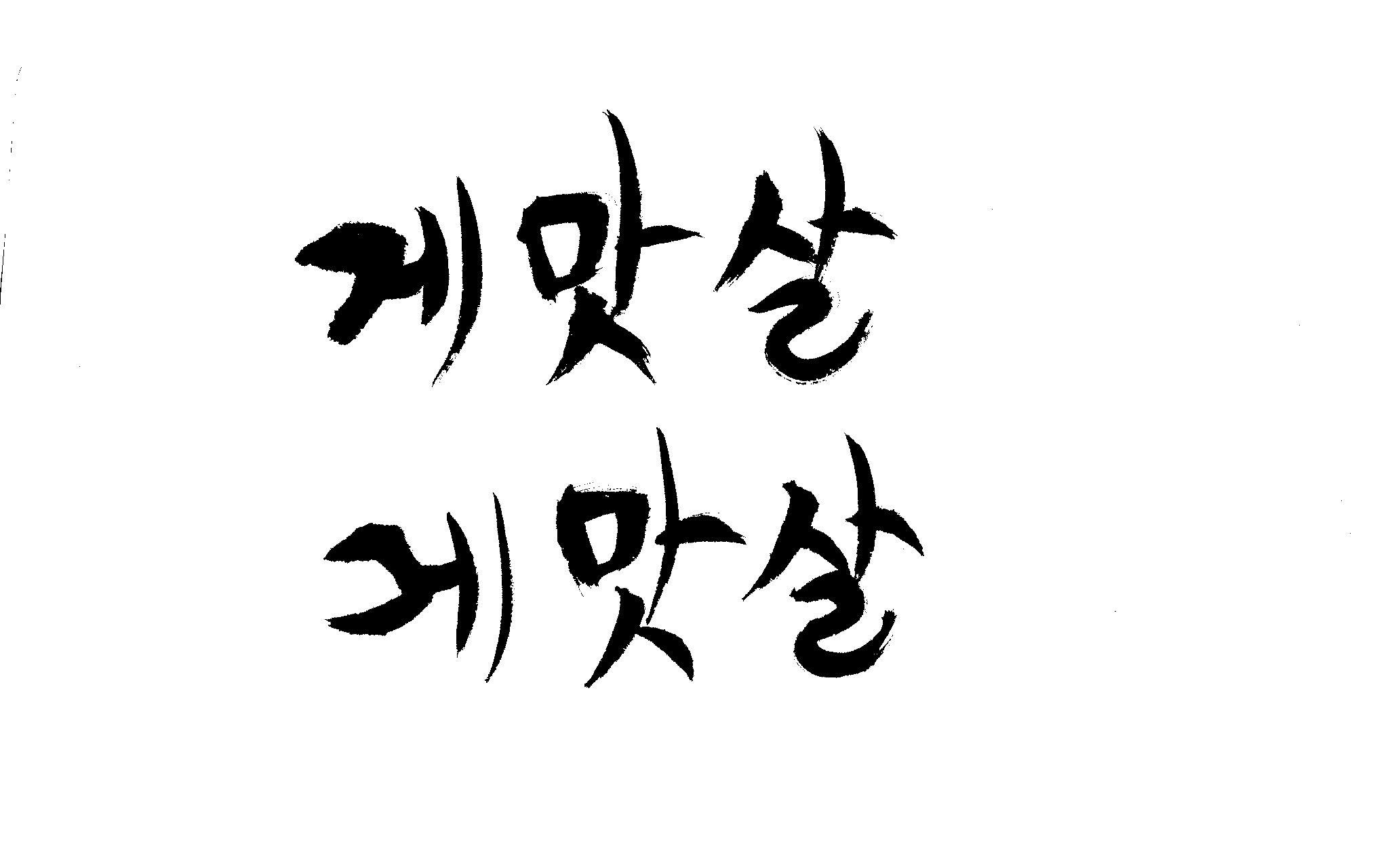 캘리 부탁드립니다. 김철호 일반 0 6294 2009.01.30 09:49 > > 제가 이리저리 써보기도 했으나 너무 이상해서 도움을 받고자 합니다. > 단어는 '게맛살' 입니다. 패키지디자인에 사용할 타이틀입니다. > 급한사항이니 부탁드립니다. 감사합니다. ^^ >