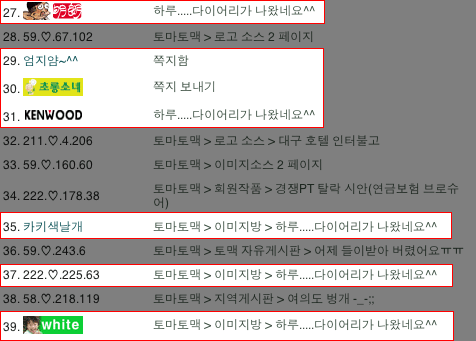 다이어리 얻을까 해서 서로들... 일부만 캡쳐 했는데도 이정도면... 알만하죠?