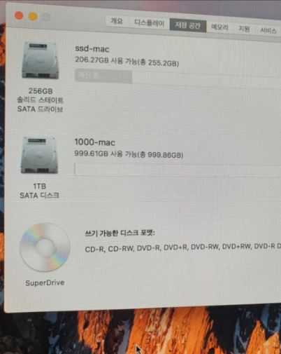 SSD 256기가 장착됨 1테라 하드 추가 장착됨
