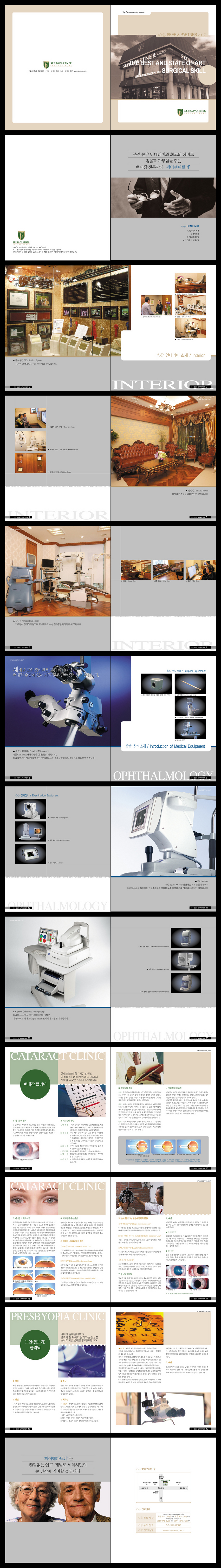이번에 압구정에 씨어앤파트너 안과 개원때 신문광고와 리플렛 등 함께 제작한 브로슈어인데 총 2권으로 제작해서 케이스에 넣도록 제작한 건데 한번 봐주시고 평가해 주세요. 급하게 진행해서 좀 그렇지만 잘봐주세요...